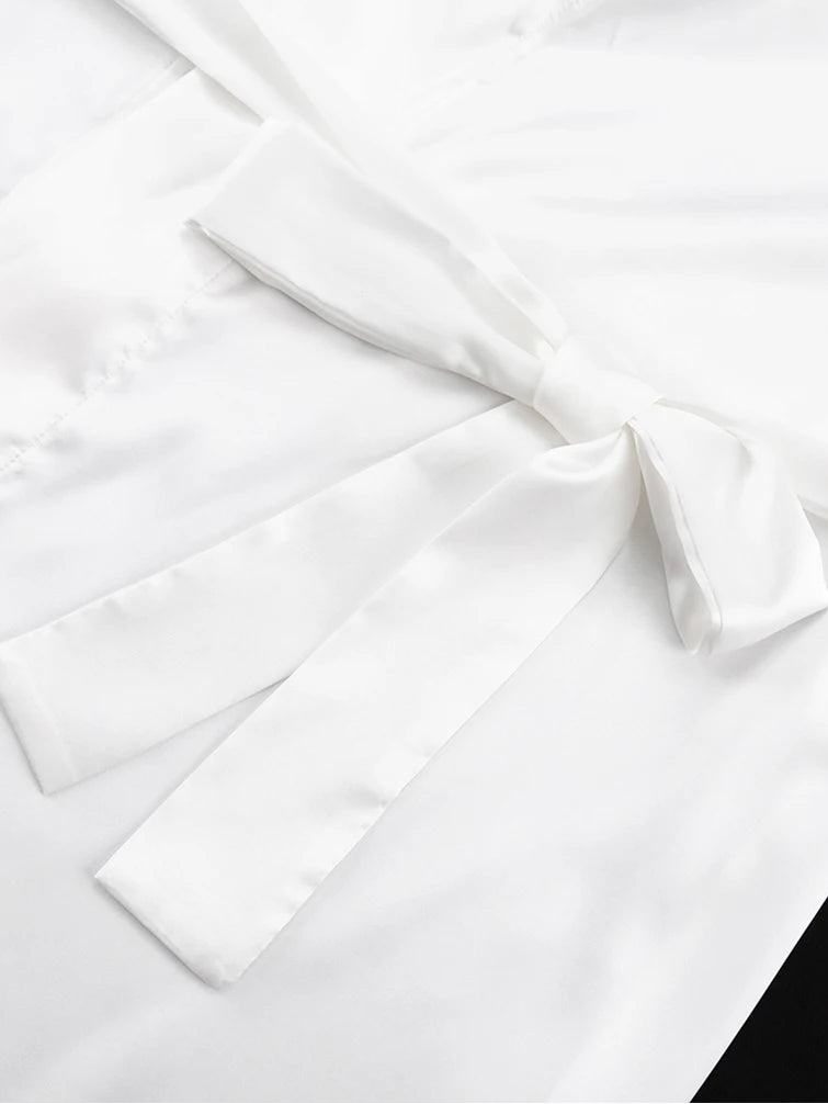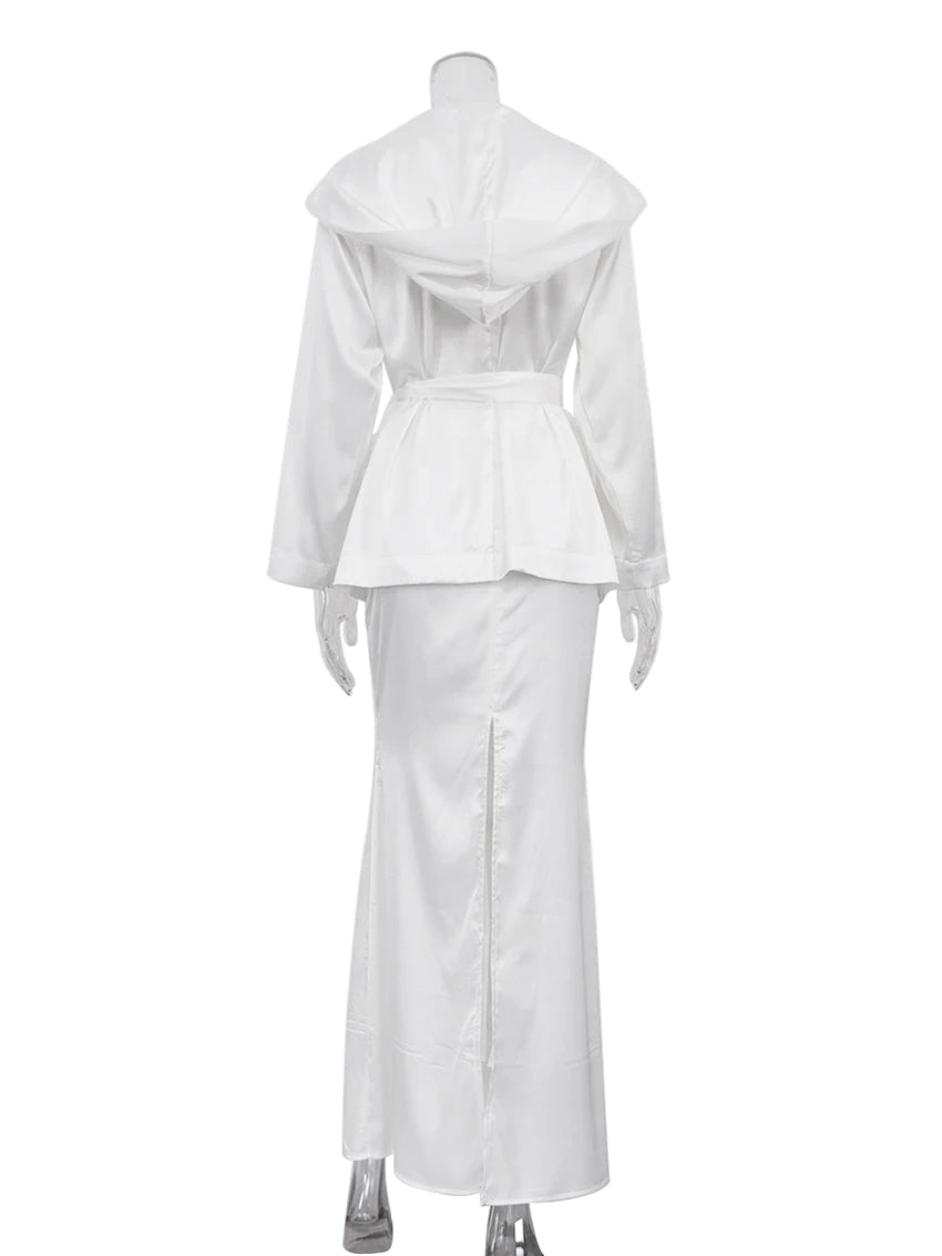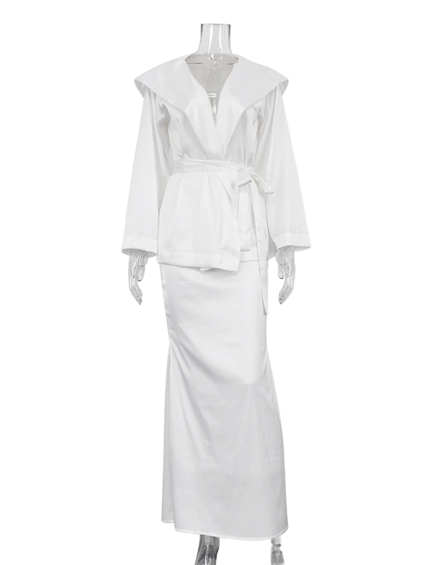 Type 1: Elegant Hooded Collar Long Sleeve Lace-Up Blouse + Slim Straight Skirts Set